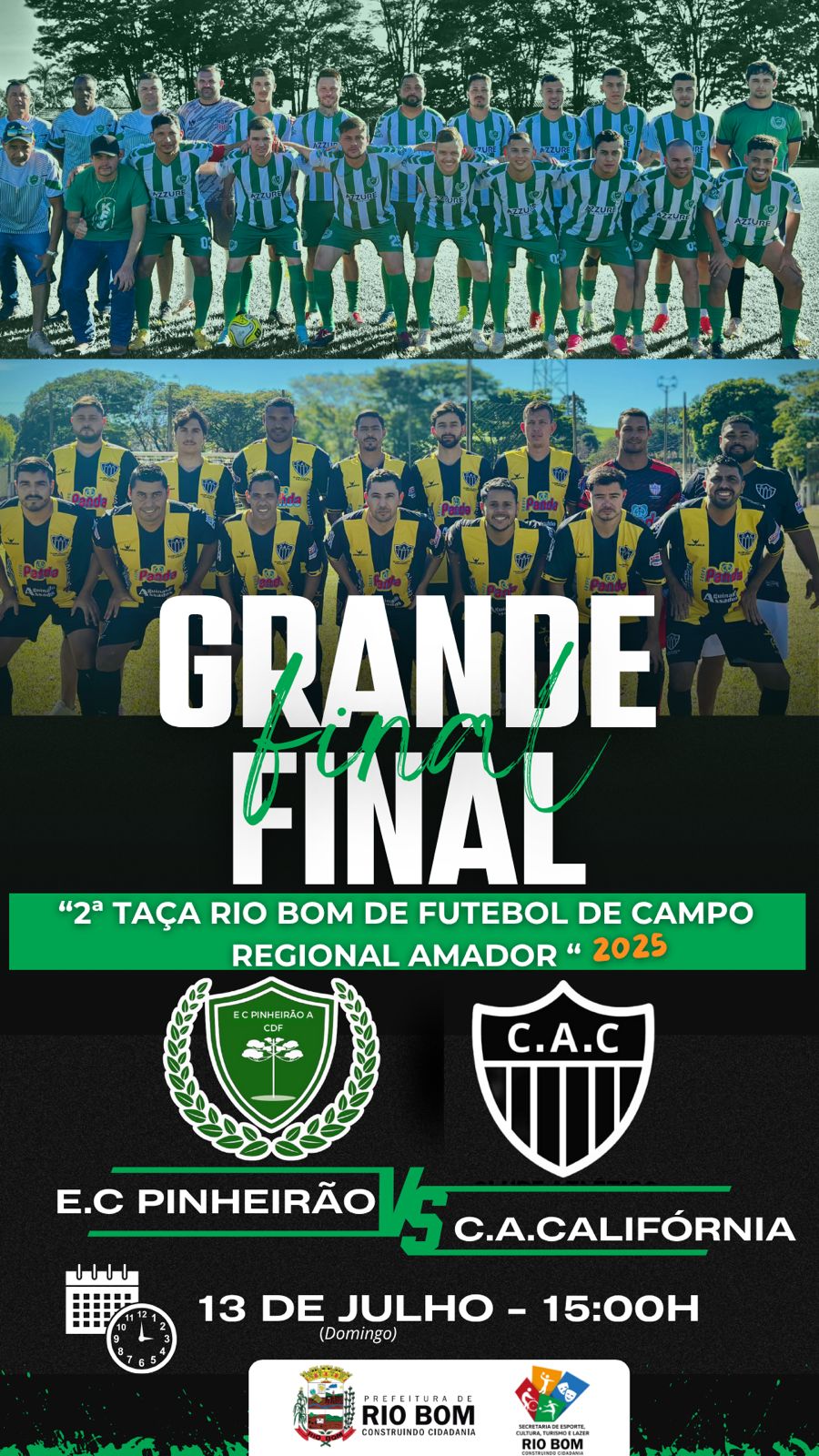 Pinheirão de Correia de Freitas e Clube Atlético Califórnia decidem o título da 2ª Taça Rio Bom neste domingo