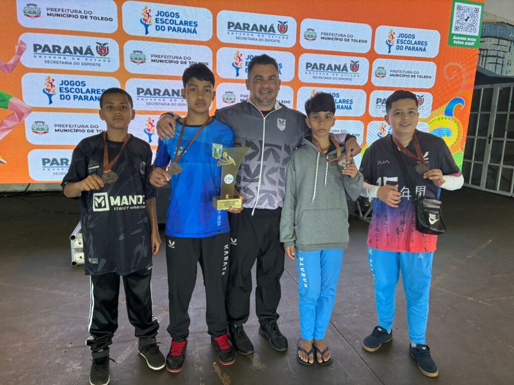 Entre os dias 7 e 9 de agosto, Apucarana viveu um momento histórico na fase final dos Jogos Escolares do Paraná (JEP´s), em Toledo. A cidade foi representada por 16 atletas da Associação Karatê Vida, que competiram sob a liderança do professor responsável e técnico Jefferson de Oliveira e dos treinadores Alan Pereira da Silva e Eliane Lemes, com o apoio do Núcleo Regional de Educação (NRE), de Apucarana, coordenado por Alécio Henrique Colombo. O desempenho da equipe rendeu quatro medalhas de bronze, resultado inédito para o município na competição.